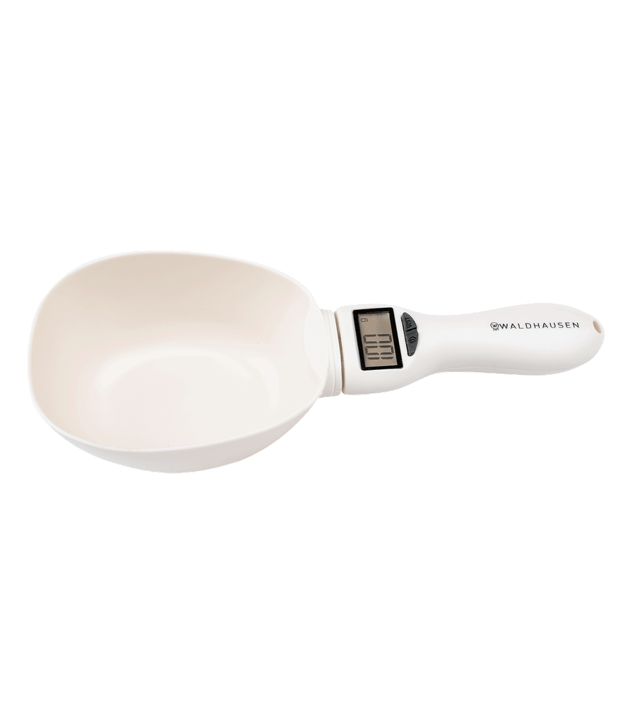O medidor digital de alimentos para animais pode ser utilizado para medir diferentes tipos de alimentos para animais e suplementos. Para o efeito, pode ser alternado entre as unidades de medida gramas, mililitros, chávenas e onças. A colher pode ser separada da pega e simplesmente lavada na máquina de lavar louça.